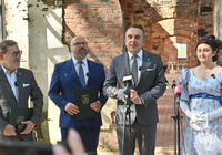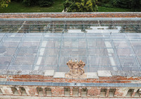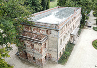 In der Nähe von den Teichen sind zwei wichtigste Parkattraktionen, die Schlossruine und wieder aufgebaute Orangerie. Die Ruine wurde abgesichert und ist jetzt für Besucher zugänglich. In der Orangerie gibt es ein Café, wo Sie sich einen aromatischen Kaffee und einen leckeren Kuchen oder ein Dessert ergötzen können. Im Sommer kann man sich auch im Rankgitter entspannen, das die Orangerie mit dem Schloss verbindet. Wenn Sie auf dem Schlosshof stehen, ist es unmöglich zwei Brunnen zu übersehen. Der repräsentativste ist der Brunnen mit der Nachbildung der Skulptur „Knabe mit dem Schwan”, der vor dem Haupteingang der Residenz steht. In der Umgebung der klassizistischen Orangerie befinden sich noch ein effektvoller Kreuzbrunnen und eine Nachbildung von einem antiken Sarkophag aus dem 3. Jahrhundert u. Z.