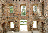 Wenn man in den Osten von der Schlossruine spazieren geht, kann man ein Aussichtsberg mit einer Grotte sehen. Auf seinem Gipfel ist eine schöne Laube (Rosentempel) gelegen. Von dort aus erstreckt sich ein wunderbarer Blick über die Wiese und die Schlossruine. Der Rosentempel ist auch perfekter Ort für romantisches Treffen.