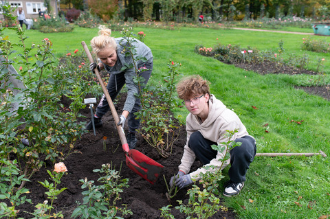 In mehreren Arbeitsgruppen wurden wieder tatkräftig Blumenzwiebeln gesteckt – rund 6.500 an der Zahl, dazu kamen Hunderte von Stauden, Sträuchern, Bodendeckern und neue Rosenpflanzen, die nun für frische Farbakzente im kommenden Jahr sorgen werden.