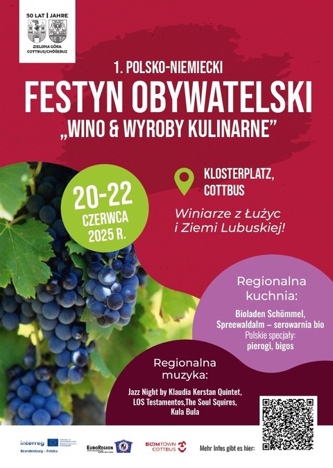 zapraszamy na 1. Polsko-Niemiecki Festiwal Obywatelski „Wino i Kuchnia” od 20 do 22 czerwca 2025 r. - wyjątkowe przeżycie pełne przyjemności, muzyki i kultury.