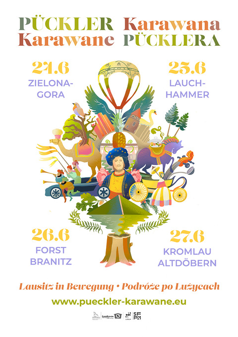 Karawana Pücklera to modelowy projekt innowacyjny a la książę Pückler – przemierza w czerwcu 2021 roku Łużyce zmieniając miejsca swojego postoju w oazy życia i sztuki, i to w sposób pomysłowy, międzynarodowy, zrównoważony i kooperatywny. Laboratorium Muz jako salon na kółkach, dziki roadshow, żywa sztuka ziemi land art., podąża za pełnym energii podróżującym księciem, łącząc go z Łużycami jako pozbawionym granic „regionem w transformacji”, z tutejszymi pałacami i ogrodami, jak i obiektami przemysłowymi i leżącymi odłogiem terenami pokopalnianymi, tworząc w ten sposób żywą i poruszającą karawanę. Świat sztuki był dla Pücklera czymś więcej niż tylko muzyką, malarstwem i poezją. Słynął ze swojej słabości do krajobrazu, ogrodnictwa, architektury, sztuki kulinarnej i sztuki życia. Karawana Pücklera chce wskrzesić tę całościową wizję, dla której inspiracją była podróż Pücklera do Orientu.