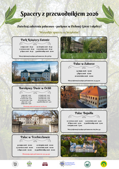 Wszystkie spacery są bezpłatne, ale w przypadku Barokowego Dworku w Ochli i Pałacu w Trzebiechowie obowiązują wczesniejsze zapisy. Dokładny harmonogram spacerów znajduje się na ilustracji głównej.